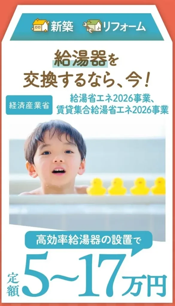 3)「給湯器の交換」だけでも対象:給湯省エネ2026(新築・リフォーム)