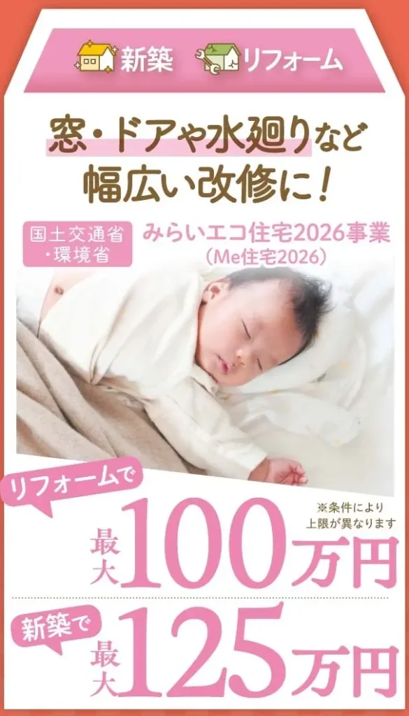 2)住まい全体を底上げ:みらいエコ住宅2026(新築・省エネ改修等)