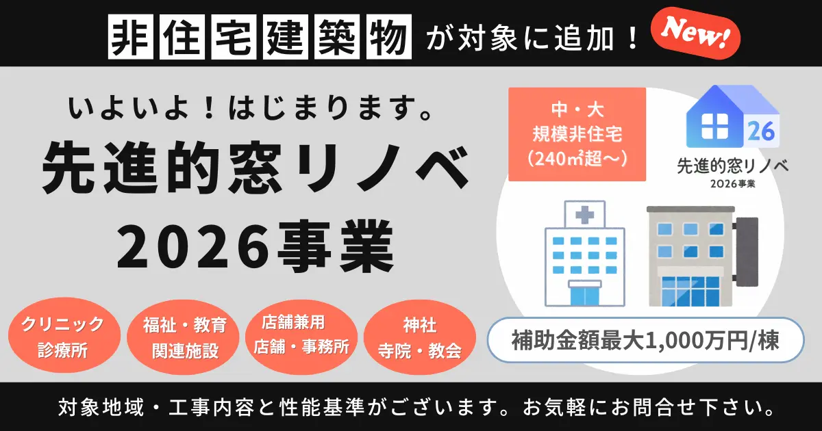先進的窓リノベ2026事業は、法人様にとっても施設の環境改善とコスト削減を同時に実現する大きなチャンスです。