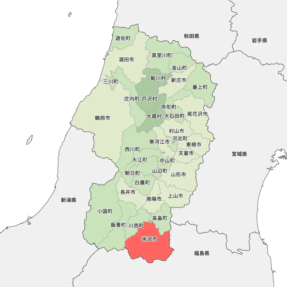 米沢は山形県南部に位置し、豊かな自然に恵まれた地域です。歴史的には城下町として発展し、ものづくりの文化が根付いてきました。現在では、産業・自然・食文化が融合した、都心からのアクセスも良い魅力的なまちとして知られています。