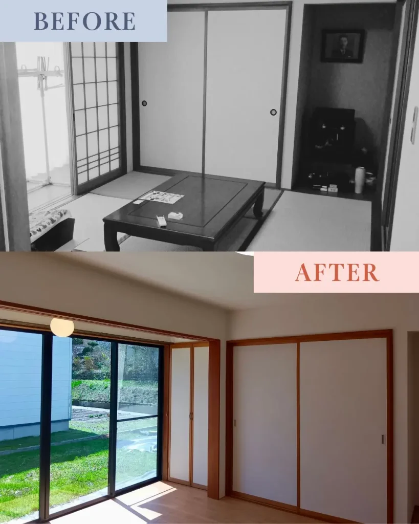 LDK一体化、和→洋、床(フローリング・フロアタイル・畳表替)、壁天井(クロス・塗装・板張り)