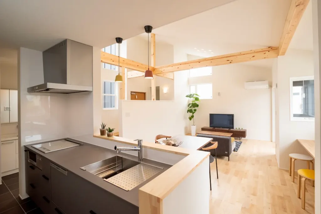 木の素材感をアクセントに、視線が抜ける伸びやかなLDKをつくりました。