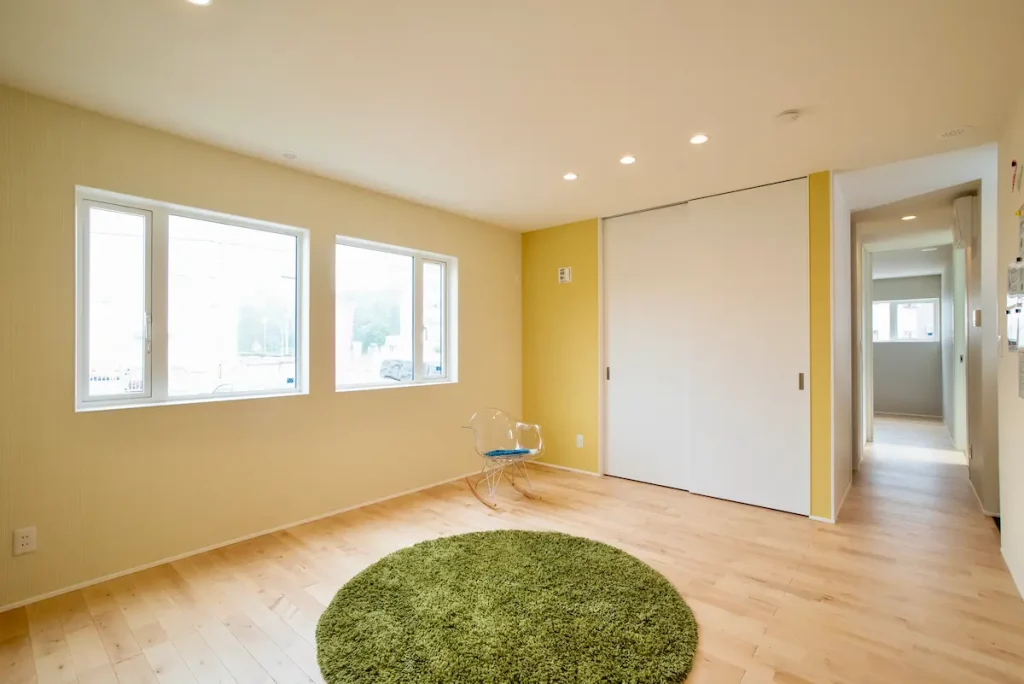 大きな窓から光を取り込み、広々とした床は遊び場やワークスペースなど多目的に使えます。