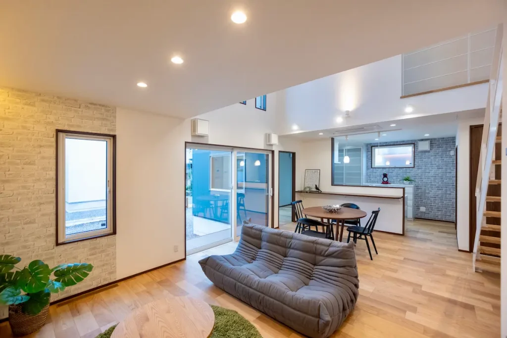 大きな窓から光が入る、開放感のあるLDK。室内と外がゆるやかにつながり、のびのび過ごせます。