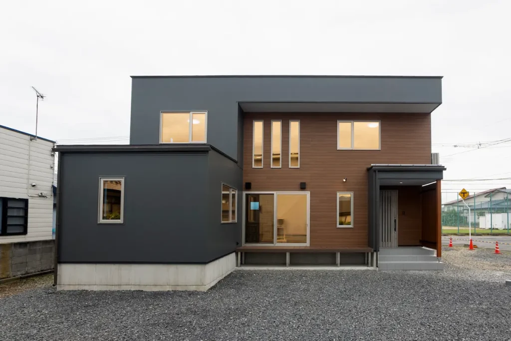 【施工事例】チャコール×木調が映える外観の家|注文住宅|米沢市