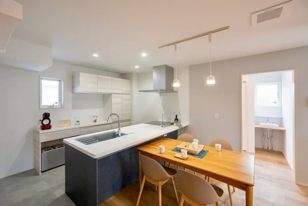 明るい面材と落ち着いた色味で、すっきりした印象にまとめました。
